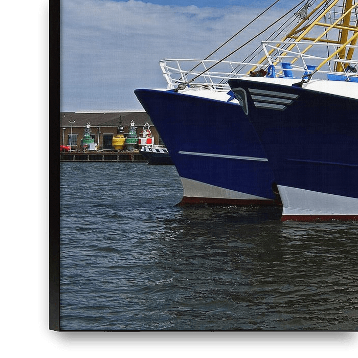 Deux bateaux de pêche bleus à Flessingue.