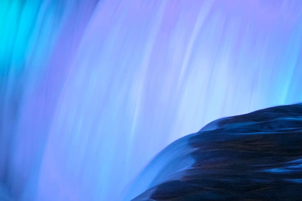 De jour comme de nuit, l'eau se jette sur le bord et plonge dans les profondeurs.