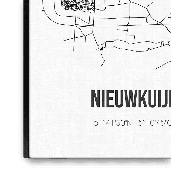 Achetez cette œuvre d'art abstraite Nieuwkuijk (Noord-Brabant) | Carte | Noir et blanc par Affiches de lieux sur toile, aluminium, ArtFrame ou photographie (encadrée), impression d'art en haute qualité et tout format.