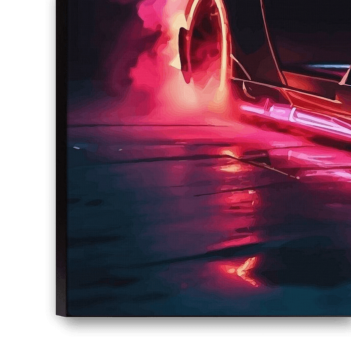 La Nissan GT-R R35 domine la scène baignée de néons avec une élégance futuriste, une tempête de performances enveloppée de feu numérique. Baignée dans l'éclat de la lumière électrique et de la fumée montante, elle incarne le mouvement dans sa forme la plus pure. L'œuvre d'art capture l'instant qui précède le lancement - cette immobilité haletante où chaque détail bourdonne d'une énergie contenue. Les reflets du néon glissent sur sa forme aérodynamique, transformant l'acier et le carbone en art. La toile de fond fumée amplifie la profondeur, comme si la voiture elle-même émettait la lumière qui l'entoure, un phare de la perfection mécanique brute.