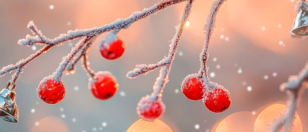 Une branche délicate avec des baies rouge vif et des lumières scintillantes en arrière-plan déploie une atmosphère magique qui rappelle les soirées d'hiver. Les couleurs douces et l'éclat onirique invitent à profiter de la chaleur relaxante d'un salon, parfait pour les moments de détente et les occasions festives.