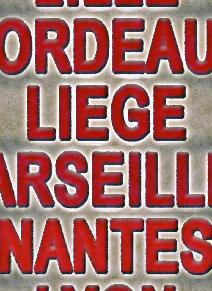 Acheter ce collage Noms de villes en France par Leopold Brix sur toile, aluminium, ArtFrame ou photographie (encadrée), impression d'art en haute qualité et tout format.