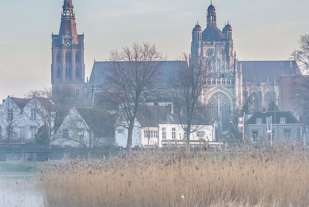 Vue de St John's depuis la réserve naturelle de Het Bossche Broek, aux premières lueurs du jour, en mars.