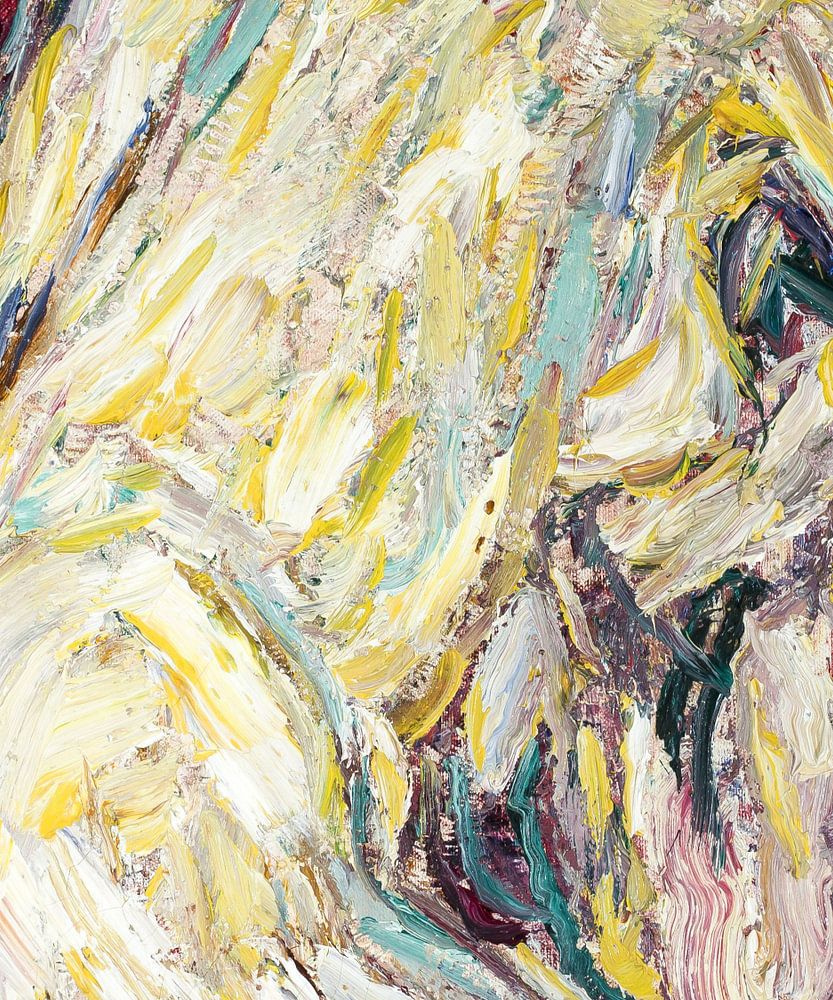 Comme la jeune fille se tient complètement nue sur l'œuvre, le modèle nu est visible sur le portrait avec les hanches, les fesses et le dos nus. La femme nue a également un sein, les épaules et un bras déshabillé et donc nu.