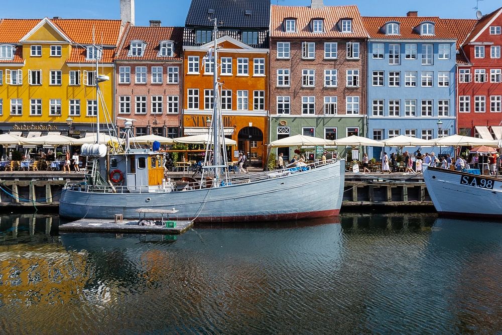 Nyhaven, dans le centre de Copenhague, au Danemark. Ce port populaire est très prisé des touristes en raison des nombreuses façades colorées des anciennes maisons de commerce, qui servent toutes aujourd'hui de restaurants.