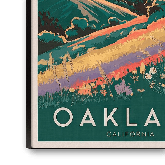 Achetez cette œuvre d'art de paysage Oakland, Californie - Affiche de voyage vintage par Poster Art Shop sur toile, aluminium, ArtFrame ou photographie (encadrée), impression d'art en haute qualité et tout format.