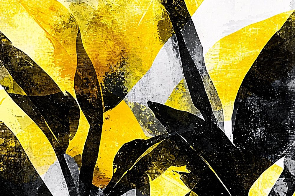 Ajoutez une touche artistique à votre intérieur avec cette œuvre d'art abstraite composée de feuilles de bananier jaunes et noires. Le contraste frappant entre les couleurs vibrantes et la texture subtile fait de ce motif un élément qui attire le regard dans n'importe quelle pièce. Parfaite pour les intérieurs modernes et minimalistes, cette décoration murale apporte une touche de nature et de beauté abstraite à votre intérieur. Un choix idéal pour les amateurs d'art unique et élégant.