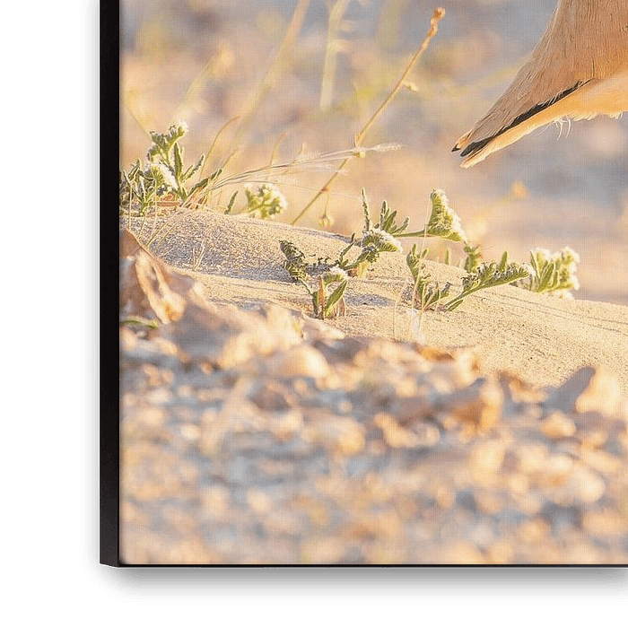 L'oiseau de course est un oiseau qui peut bien survivre dans un désert comme le Sahara. Je suis tombé sur cet oiseau dans le Sahara occidental au moment où la lumière du soir l'illuminait magnifiquement. Pour d'autres oiseaux du Sahara, voir : naturebylennart.com/birds-blog/birds-of-the-sahara.