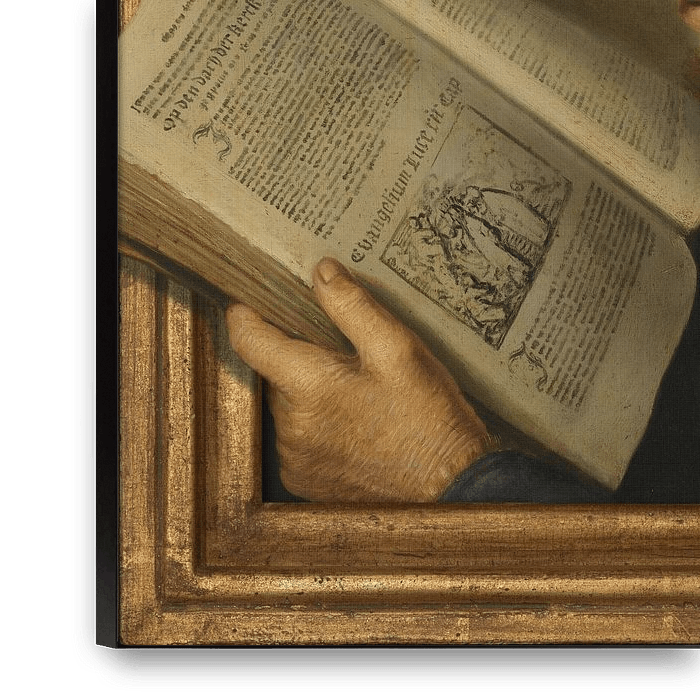 Une vieille femme lit le dix-neuvième chapitre de l'Évangile selon Luc, tableau peint vers 1631 par le peintre néerlandais Gerard Dou (également connu sous le nom de Gerrit Dou),