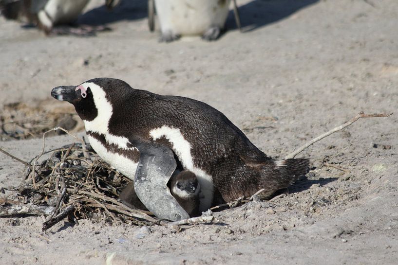Pinguin met jong in Kaapstad, Zuid-Afrika