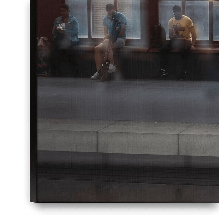 Fait partie d'une série de photographies de rue abstraites. J'essaie de donner aux photos une abstraction, où la scène de rue est reconnaissable, mais où les gens dans la scène de rue sont moins visibles, mais constituent une partie importante de cette scène de rue. Une touche de personnes combinée à des couleurs frappantes, qui vous font d'abord vous demander 'qu'est-ce que je regarde ' ;.