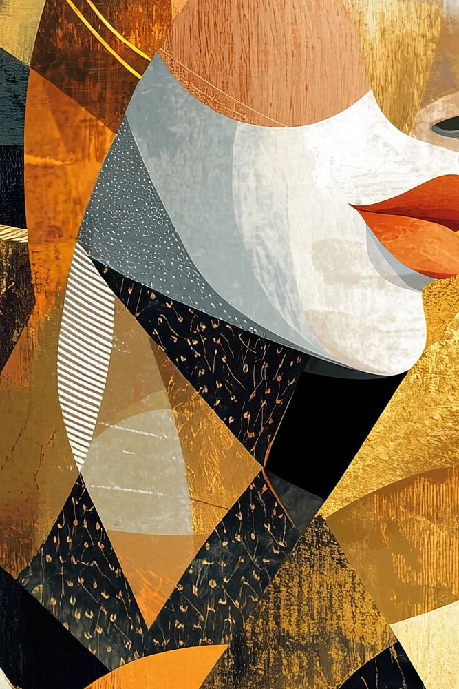Zen Gold - Ce tableau abstrait représentant une femme combine des tons harmonieux de beige et d'or avec des éléments géométriques, dégageant un calme serein et zen.