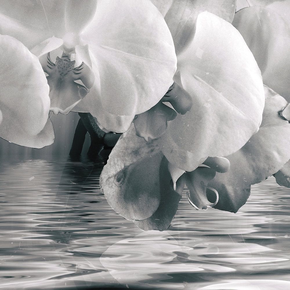Wasserorchidee , orchidée , blanc, noir , noir et blanc , orchidée, fleur de chambre , houseplant , flore, fleuristerie , beauté, imaginaire , digitalart, carrés , plante de la forêt , jungle, illustration , graphique, texture , décorations de salle , Fleur Posters , mousseux , eau, Nature morte , Reflet d'eau , fluorescentes, enchanteur, photographie, fleurs