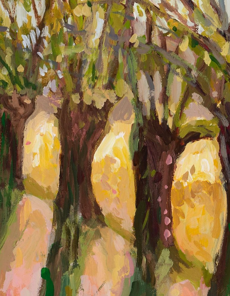 La toile originale "Where is the shade (large)", 2022 a été réalisée par l'artiste néerlandaise Tanja Koelemij et a une taille de 90 x 70 cm. L'image rêveuse des saules têtards a été réalisée sur la base d'un souvenir.
