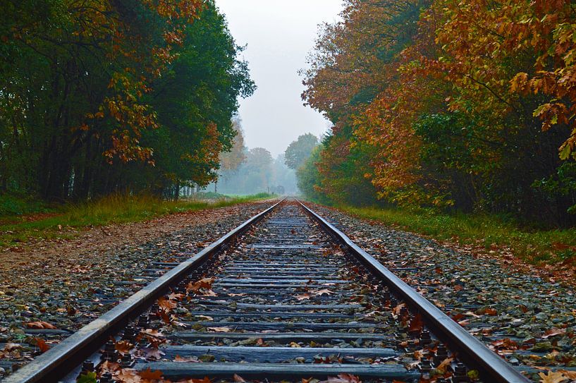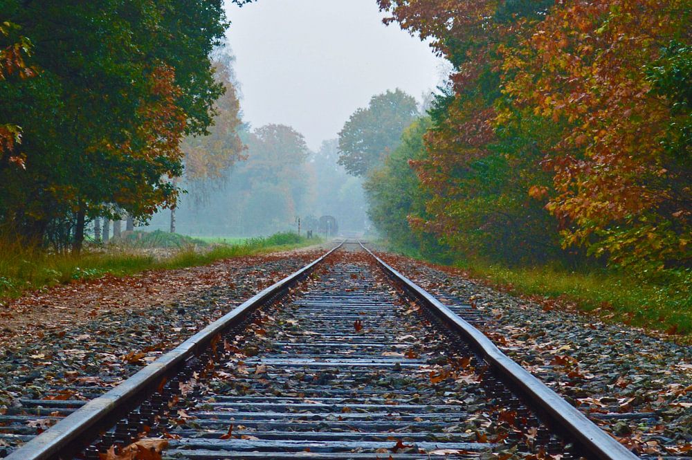 Over dit spoorweg rijdt een oude stoomtrein. In de zomer rijdt deze nog steeds. Prachtige kleuren van de herfst die de Nederlandse bossen treft.