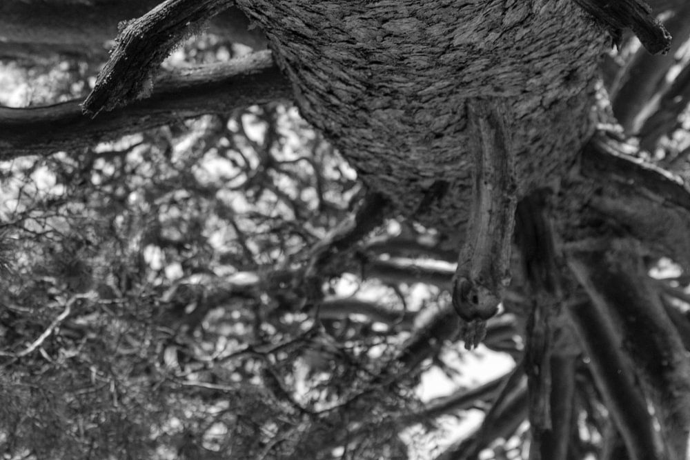 een oude boom van onderaf gezien