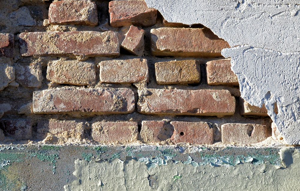 Mooie oude vervallen fabrieksmuur en bakstenen en betonlook