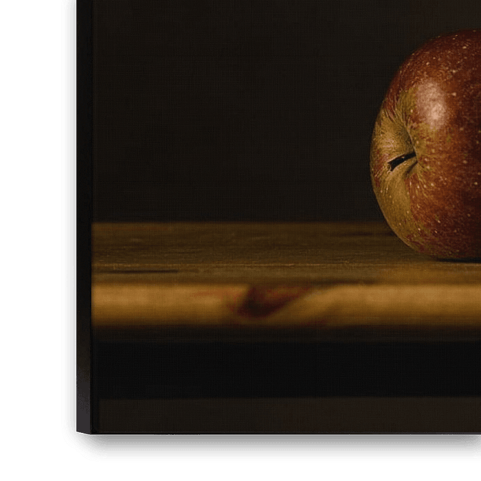 Nature morte d'un vieil ours en peluche. Ce vieil ours en peluche usé, chauve mais avec encore un soupçon de rouge sur les joues, a été laissé sur la table de la cuisine entre de la vaisselle (une cloche) et des pommes. Sur ses gardes et attendant de voir ce qui va être cuit ?