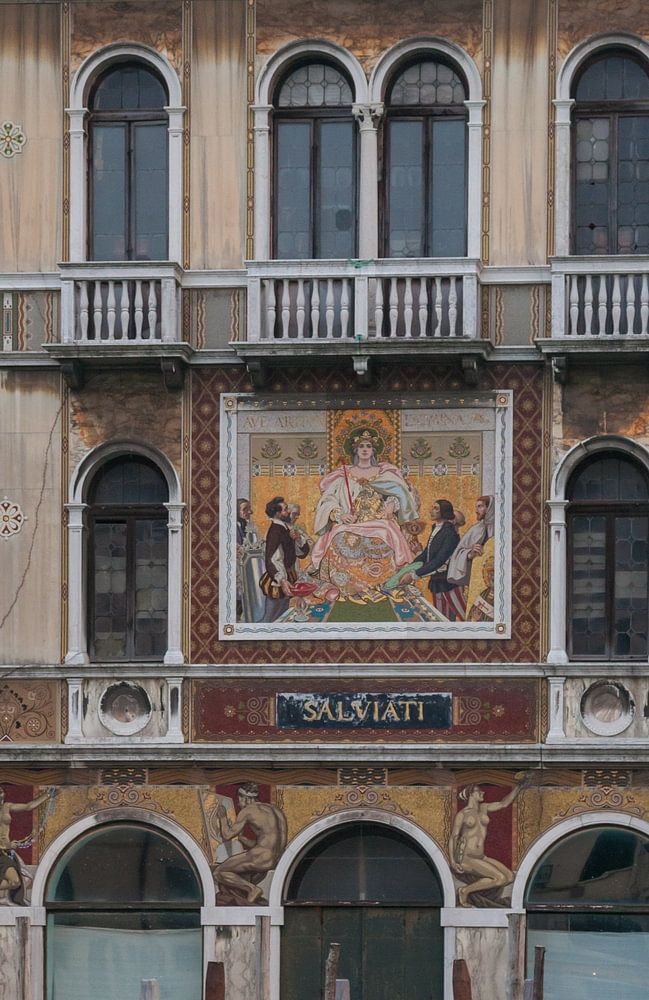 Palais avec façade en mosaïque sur le canal dans la vieille ville de Venise, Italie
