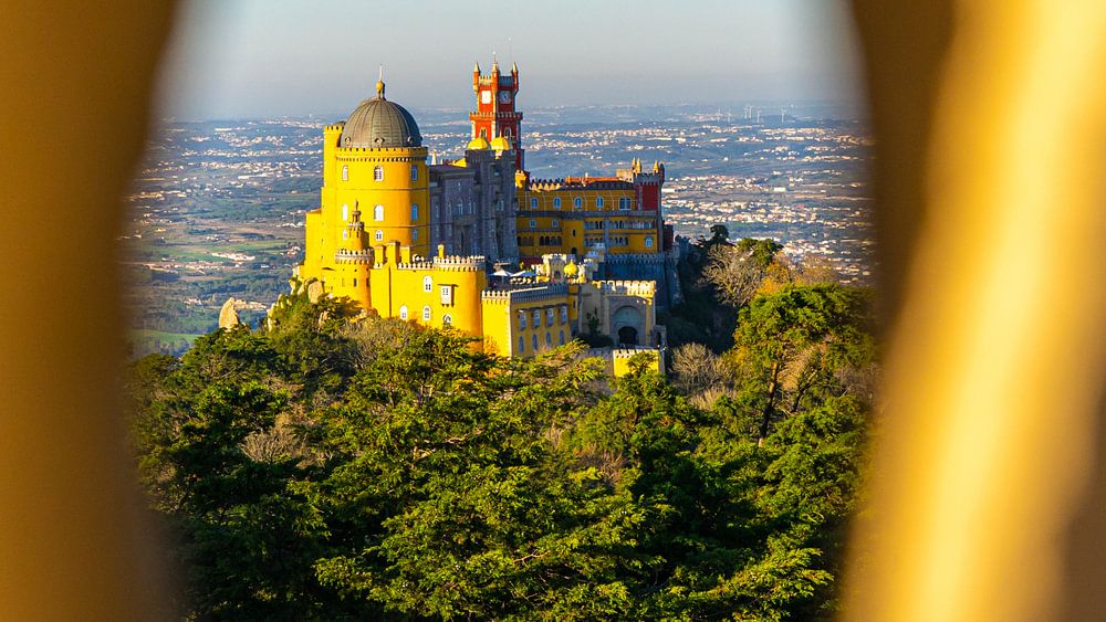 Le Palais de la Peña à Sintra, près de Lisbonne (Portugal). La photo a été prise depuis Alta Cruz, le point culminant de Sintra.