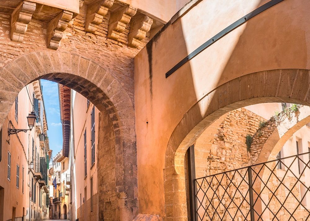 Palma de Majorque, vue panoramique d'une rue de la vieille ville de Palma, Espagne