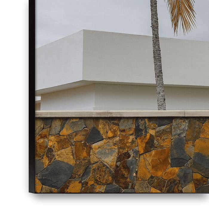 Achetez cette photo Palmier devant une architecture moderne par Alexander Baumann sur toile, aluminium, ArtFrame ou photographie (encadrée), impression d'art en haute qualité et tout format.