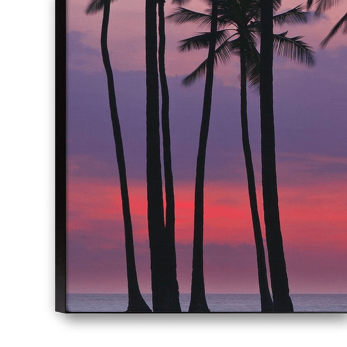 Palmtrees at Sunset at Pu'uhonua o Hōnaunau National Historical Park with view over the Pacific as seen from The Big Island, Hawaii, United States.