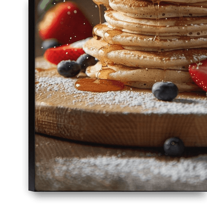 Ce tableau vivant montre des crêpes parfaitement préparées, décorées d'une généreuse portion de baies fraîches et d'un trait de sirop. L'effet détaillé de sucre glace et les couleurs réalistes en font une pièce de décoration exceptionnelle pour les cuisines et les salles à manger. Un must pour les gourmands et les amateurs de décors de…