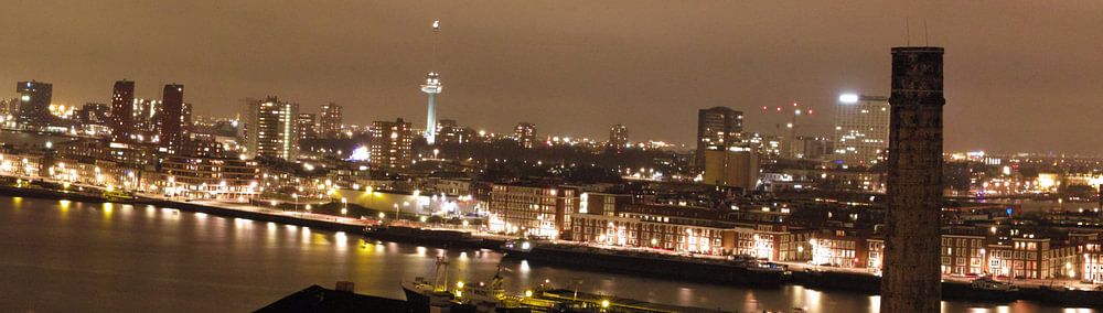 Panoramafoto van de Maashaven in Rotterdam in de late avond.