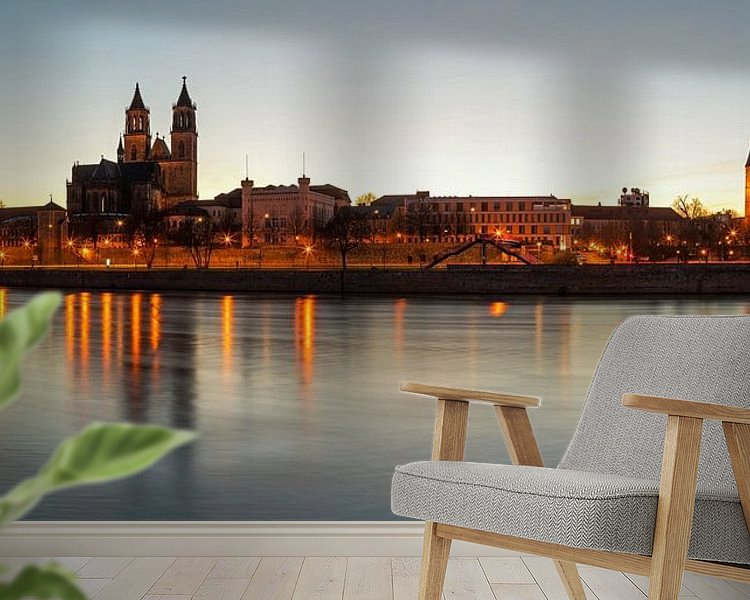 Achetez cette photo Panorama de la ligne d'horizon de Magdebourg par Frank Herrmann sur toile, aluminium, ArtFrame ou photographie (encadrée), impression d'art en haute qualité et tout format.