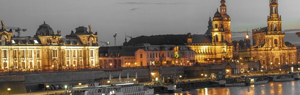Cette vue de la vieille ville de Dresde a été prise depuis le pont Carola ("Neue Brücke") avec un trépied et une longue exposition. Il s'agit d'un extrait d'une photo panoramique encore plus large - mais qui se concentre ici sur les bâtiments les plus marquants et met particulièrement en valeur le jeu de lumières dans l'Elbe.