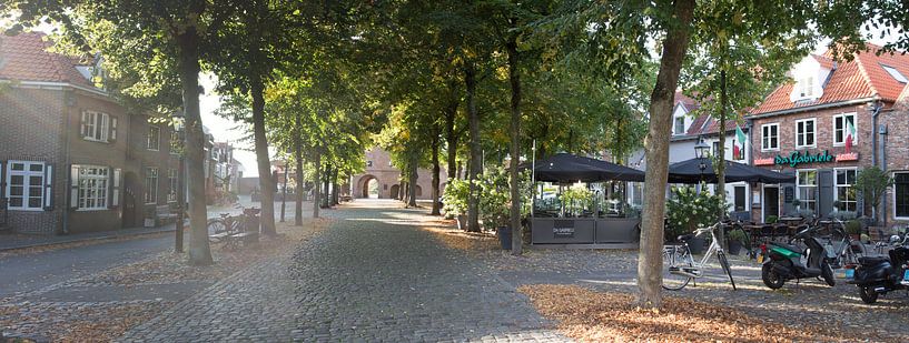 J'ai pris cette photo panoramique au Vischmarkt à Harderwijk. Le panorama se compose de 7 photos distinctes que j'ai collées ensemble dans Photoshop. Le Vischmarkt de Harderwijk est l'une des plus belles places de Harderwijk. J'ai pris cette photo panoramique en été, mais si vous regardez attentivement les feuilles des arbres, vous pouvez encore voir quelque chose de l'automne. Si vous regardez à l'arrière-plan, vous pouvez encore voir un peu de la Vischpoort. Je ne sais pas quel type d'arbres vous voyez sur la photo, ce sont en tout cas des arbres à feuilles caduques.