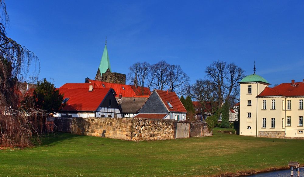 Achetez cette photo Panorama du château de Westerholt par Edgar Schermaul sur toile, aluminium, ArtFrame ou photographie (encadrée), impression d'art en haute qualité et tout format.