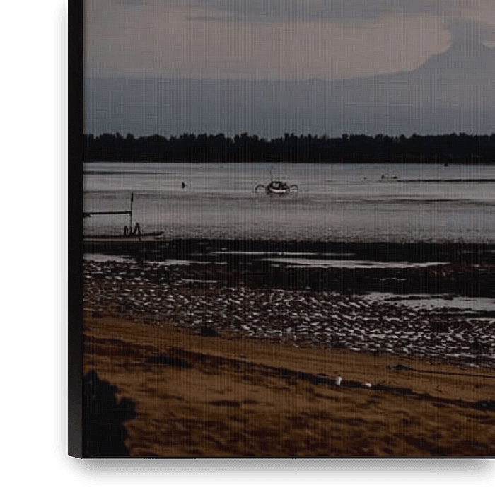Tôt le matin avant le coucher du soleil, une vue panoramique sur la côte est de Benoa, surplombant Batoemadeg. L'eau est basse car la marée est basse le matin. Il peut y avoir une différence de hauteur de 2,5 m entre la marée basse et la marée haute.