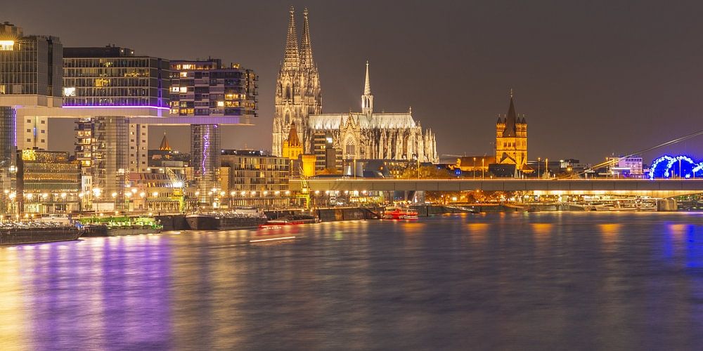 Les imposantes Kranhäuser, telles des sentinelles de la modernité, s'élèvent fièrement vers le ciel. Leurs façades de verre scintillantes racontent des histoires de dynamisme urbain et d'énergie créative, reflétant le pouls palpitant de cette ville. Elles sont les étoiles brillantes d'un skyline nocturne de Cologne, qui s'unissent au ciel étoilé scintillant pour former une danse magique.