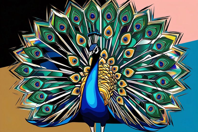 Achetez cette œuvre d'art de paysage Paon abstrait coloré par Art & Soul Creations sur toile, aluminium, ArtFrame ou photographie (encadrée), impression d'art en haute qualité et tout format.