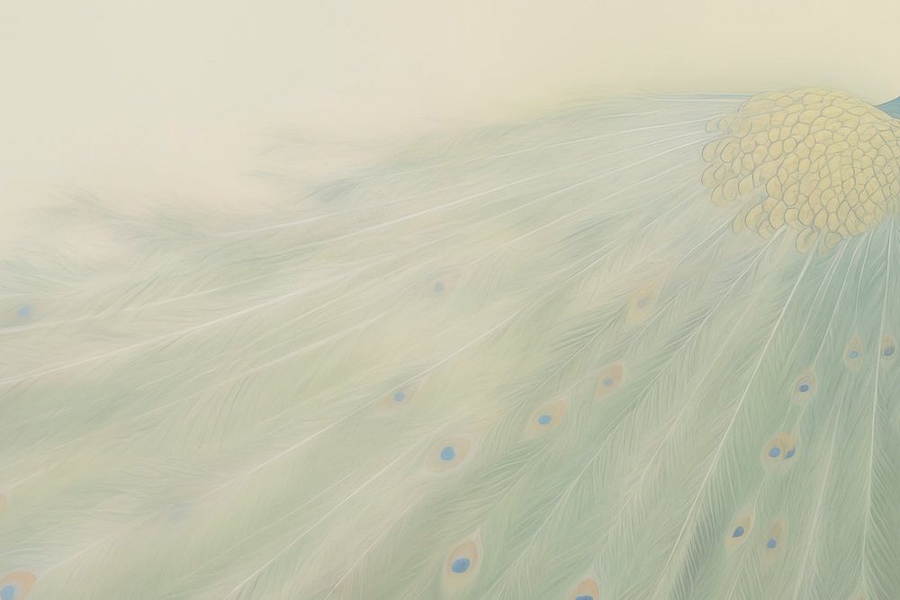 Une peinture numérique colorée d'un élégant paon. L'œuvre donne un aspect rêveur et classique à votre intérieur !