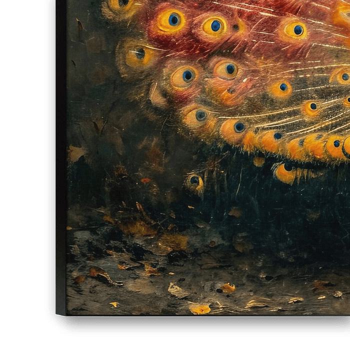 Une peinture murale comme art décoratif pour une décoration d'intérieur élégante. Un paon montre son magnifique plumage.