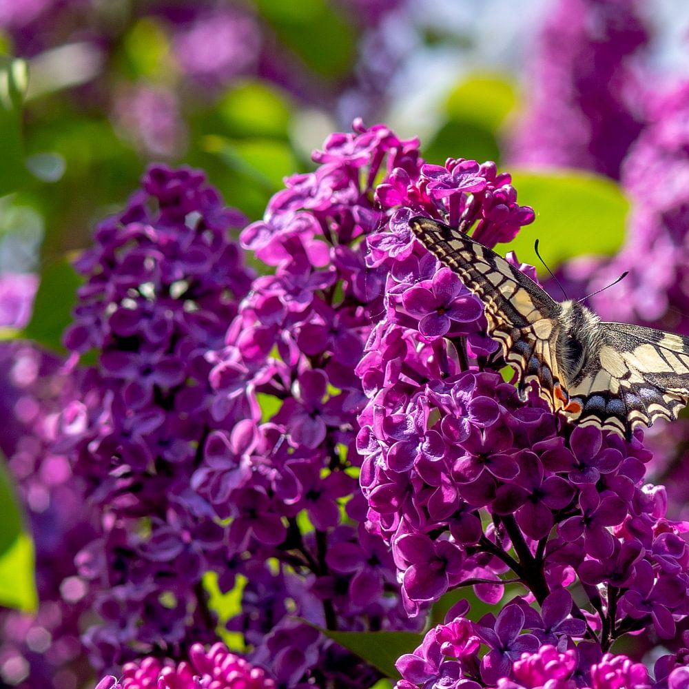 Le papillon Atalanta était également assis sur les lilas, mangeant tout le nectar que les fleurs leur donnent en échange de la pollinisation. Créez une scène extérieure merveilleusement colorée dans votre propre jardin en la faisant imprimer sur une toile.