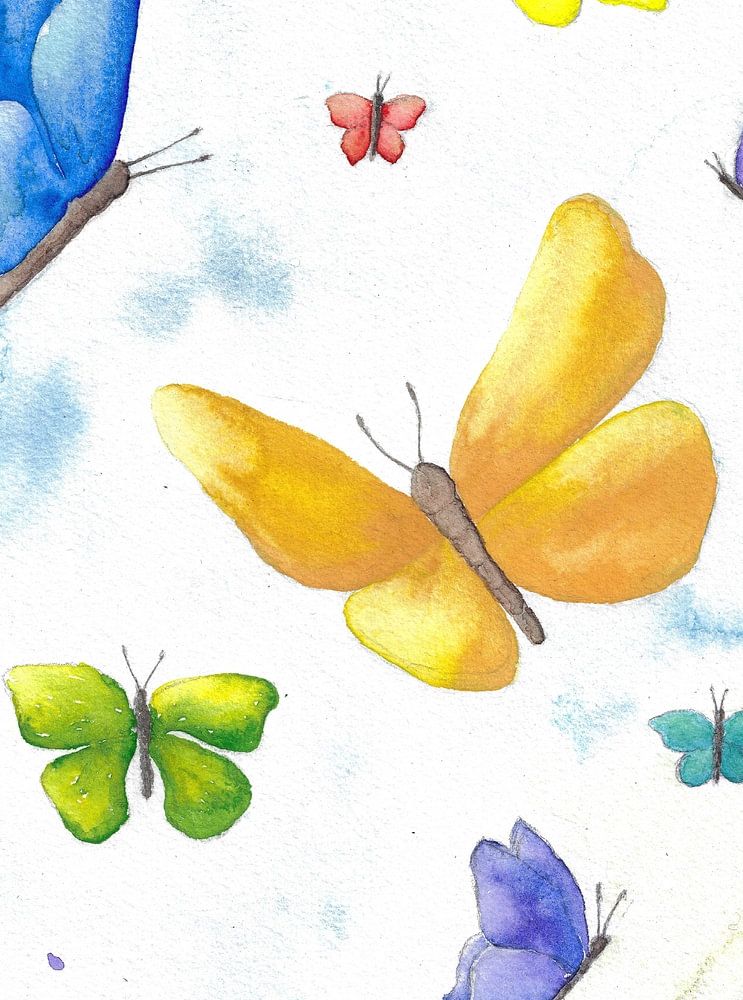Cette aquarelle montre la légèreté des papillons dans de beaux dégradés de couleurs.