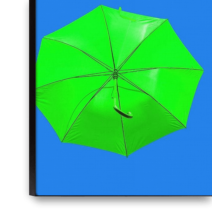 Parapluies verts sur fond bleu