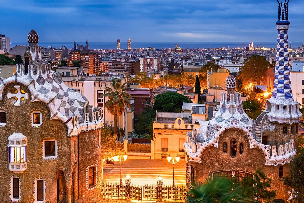 Parc Guell à Barcelone, Espagne, la nuit