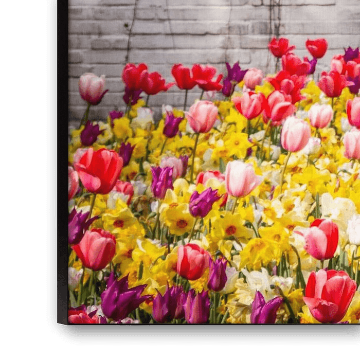 L'ambiance qui se dégage de cette image est pleine de joie de vivre et d'esthétisme. Les tulipes donnent vie au printemps et contrastent harmonieusement avec la hauteur imposante du mur de pierre blanche. Une promenade le long de cette mer de fleurs est comme un voyage dans un monde de couleurs et de beauté. C'est un plaisir intense pour les yeux et une source d'inspiration pour les amoureux de la nature qui peuvent profiter pleinement de la combinaison de fleurs vivantes et d'un mur de pierres blanches.