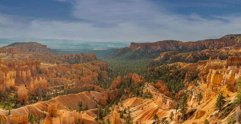 Bryce Canyon est un parc national situé dans la partie sud-ouest de l'État américain de l'Utah. Bryce Canyon est célèbre pour ses formations rocheuses géologiques uniques. Grâce aux forces combinées du gel et du dégel, les formations de calcaire et de grès sont lentement érodées pour former les "hoodoos". Les sommets usés créent de belles formations qui semblent très mystérieuses à la lumière du soleil. Le soleil crée des nuances de couleur dans les roches. Les couleurs varient du rose à l'orange. Il fait partie du Grand Escalier.
