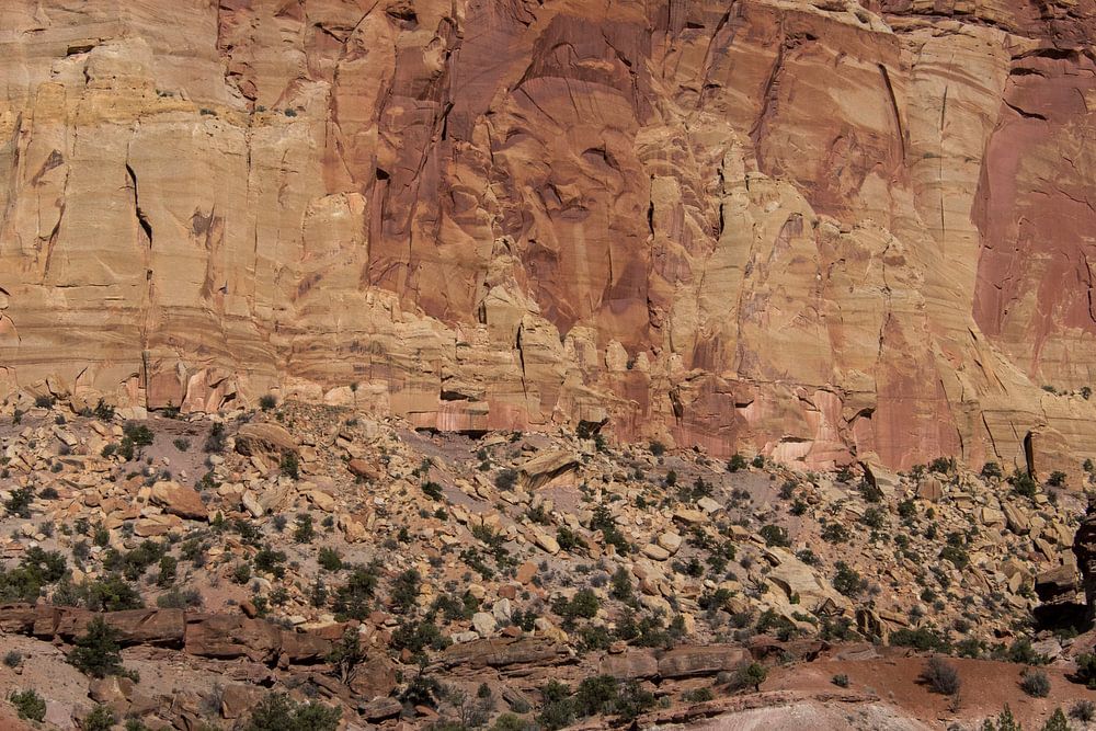 Les formations rocheuses du parc national de Capitol Reef montrent leur meilleur côté. Tant de nuances différentes de la nature, du brun et du beige à l'orange et au terra.