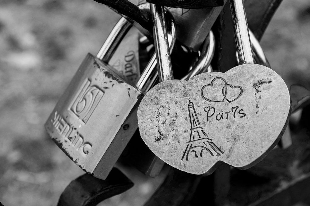 L'amour s'enferme sur une barrière avec des boucles à Paris. On ne peut pas dire sa bien-aimée plus joliment. Laissez-vous emporter par ce petit détail amoureux.