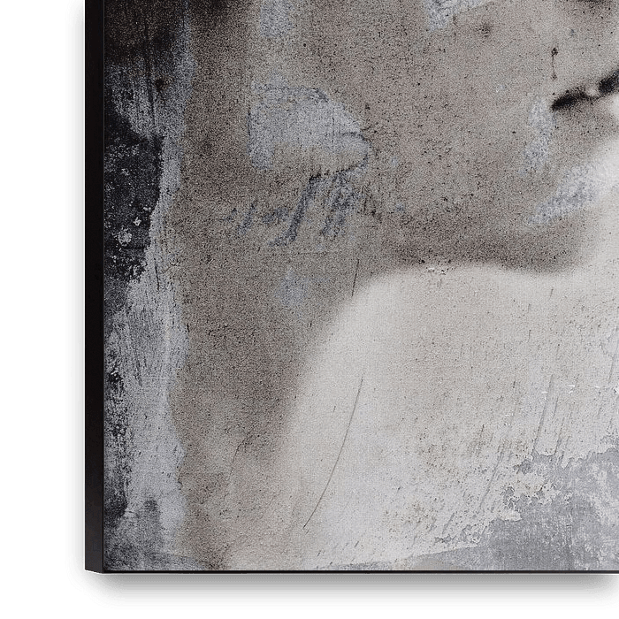 Achetez cette œuvre d'art abstraite Parle-moi | Collage urbain à l'aspect grunge béton | Portrait de femme par MadameRuiz sur toile, aluminium, ArtFrame ou photographie (encadrée), impression d'art en haute qualité et tout format.