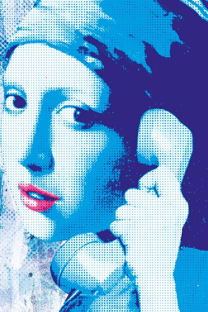 Cette œuvre est une parodie vibrante et colorée de l'un des tableaux les plus célèbres de Johannes Vermeer : La jeune fille à la boucle d'oreille. Il semble qu'aujourd'hui, elle occupe un emploi de bureau en tant que responsable de la réussite des clients.