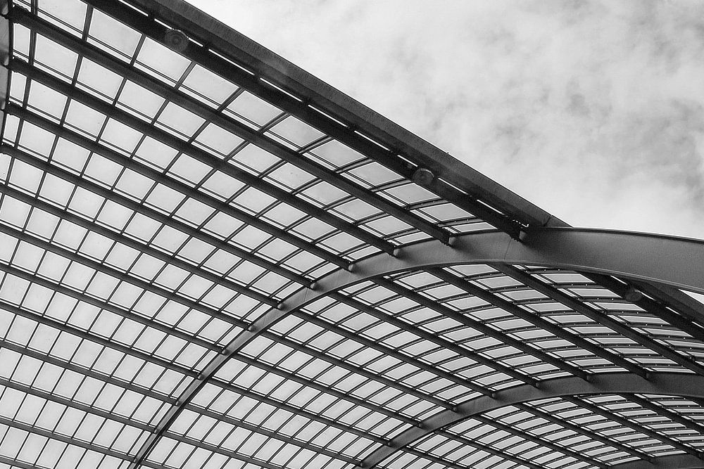 Het imposante glazen/metalen dak boven de busbaan van de nieuwe passengerterminal