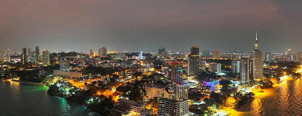 Pattaya by Night from Jomtien : Illuminated Coastline and City Silhouette (Pattaya de nuit depuis Jomtien : côte illuminée et silhouette de la ville) par Franklin Driessen